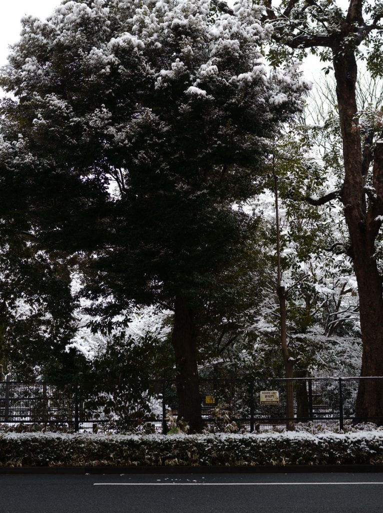 本日、ここ新宿御苑前は雪。