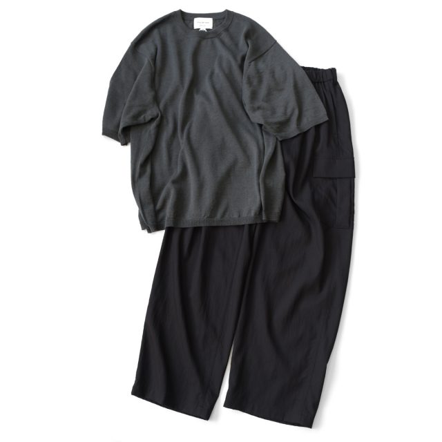 4. テンセル添セミワイドカーゴパンツ × チャコールニットTシャツ