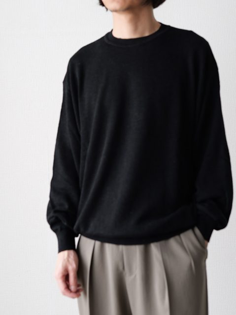 ネップ感と落ち感のあるレーヨン/リネンミドルゲージニット生地。