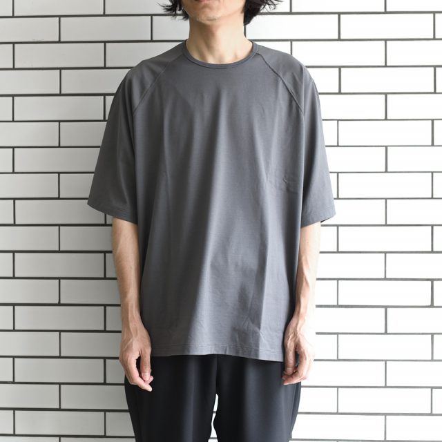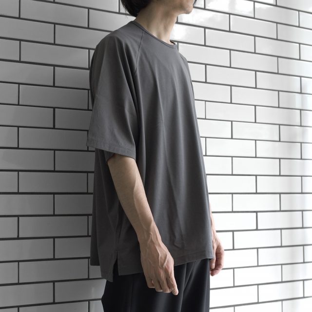 光沢のある品の良い生地にラグランスリーブを採用し、カジュアルになりすぎない