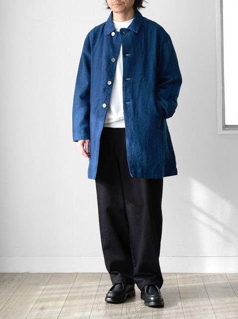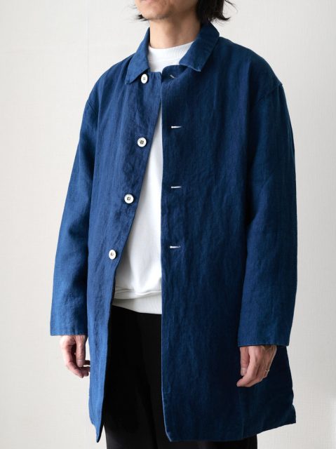 ブランド定番の「サクラコート」のリネン藍染モデルです。