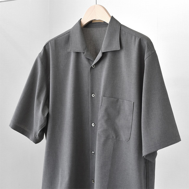 首元は涼しげなオープンカラーで、夏らしい爽やかさを演出します。