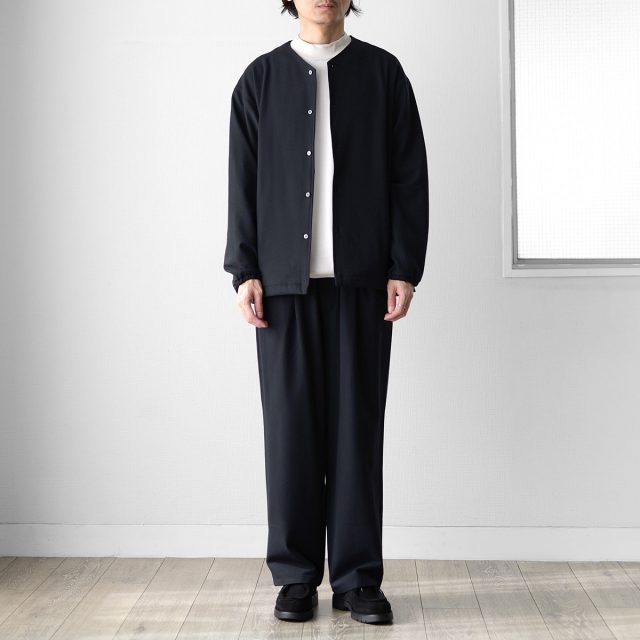 ブラック、チャコールどちらもシックで大人の雰囲気のセットアップ。