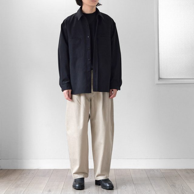 シャツのデザインをベースにしながら、適度な厚みとハリを持つ生地によりジャケットとしても機能します。