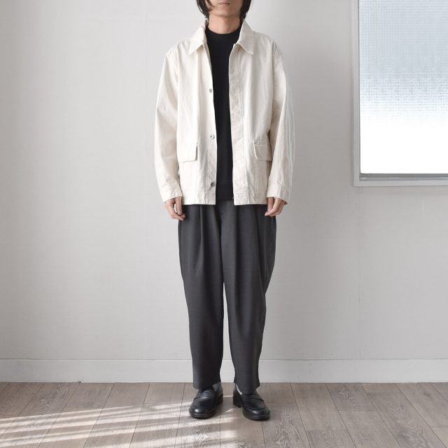 綺麗目パンツからワイドパンツまで様々なパンツに合わせて楽しむことのできるジャケットです。