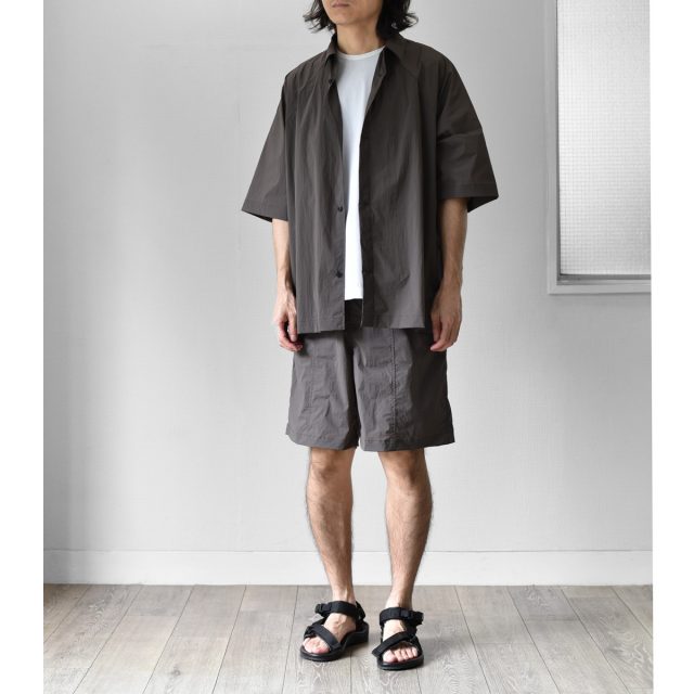 STILL BY HAND – Nylon Easy Short Pants – Charcoal Brown
