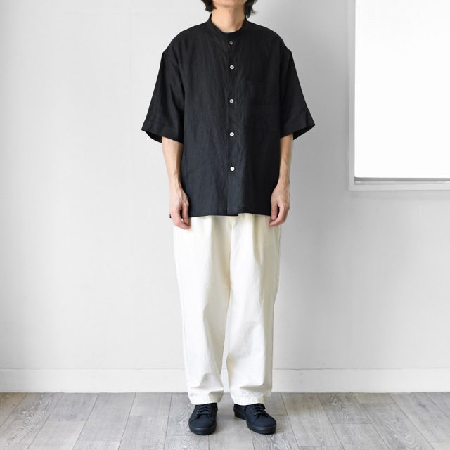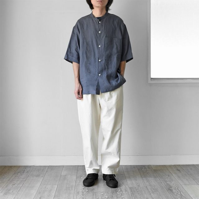 STILL BY HANDよりリネンバンドカラーシャツのご紹介です。