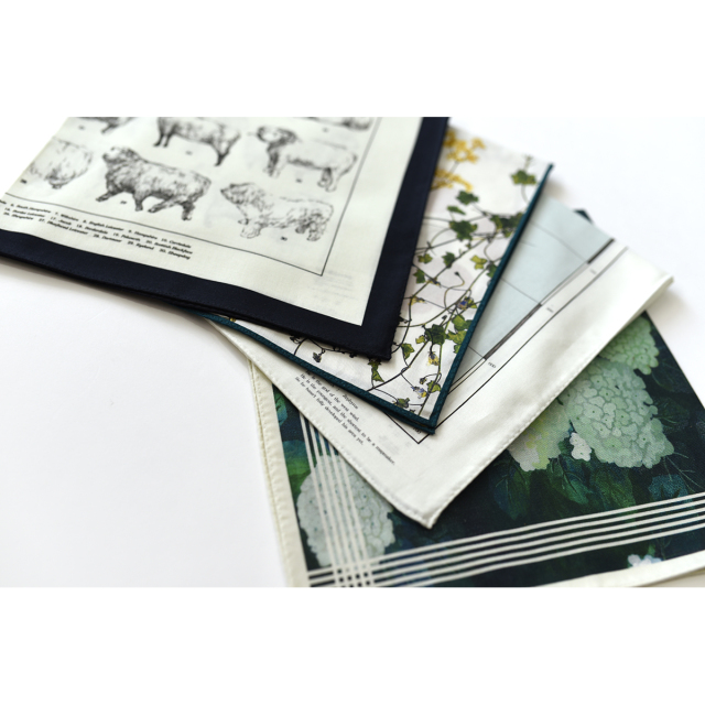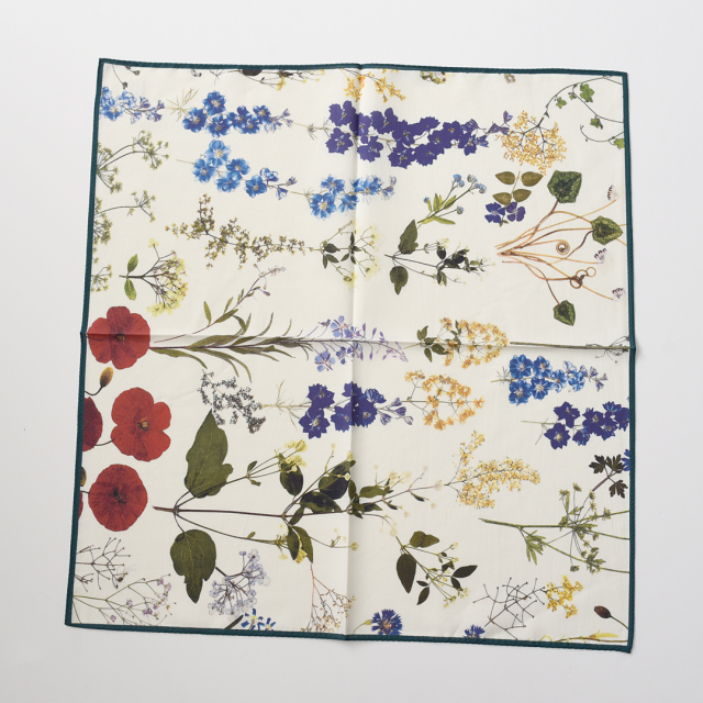ハンカチとして使ったり、首に巻いたり、鞄に結んだりと様々なシーンで映える一枚です。