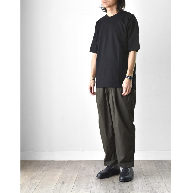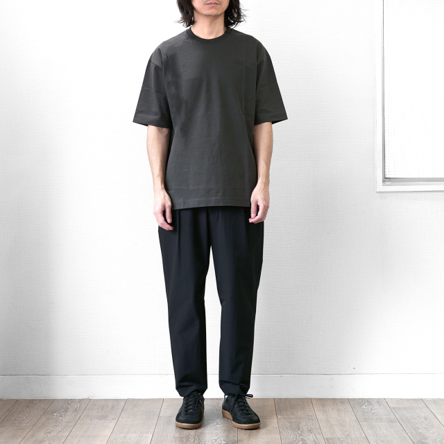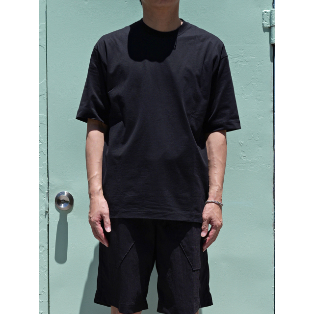 中肉天竺素材を用いた半袖クルーネックTシャツ。