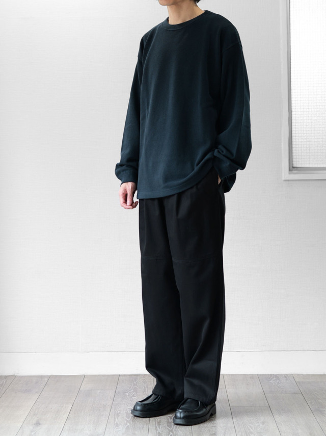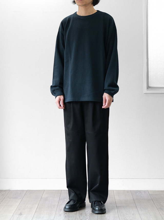 スウェットとロンTEEの中間くらいの生地厚でオールシーズン着用可。