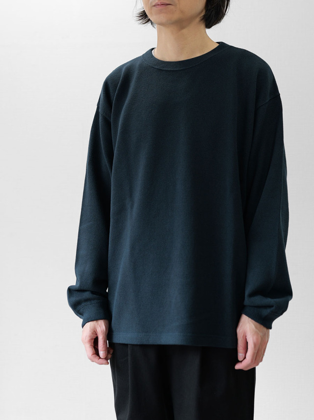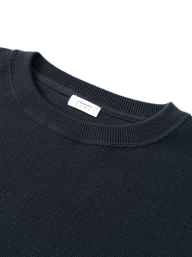 カノコ編みのクルーネックニット。