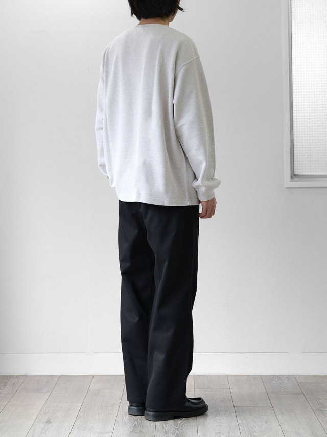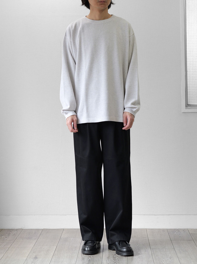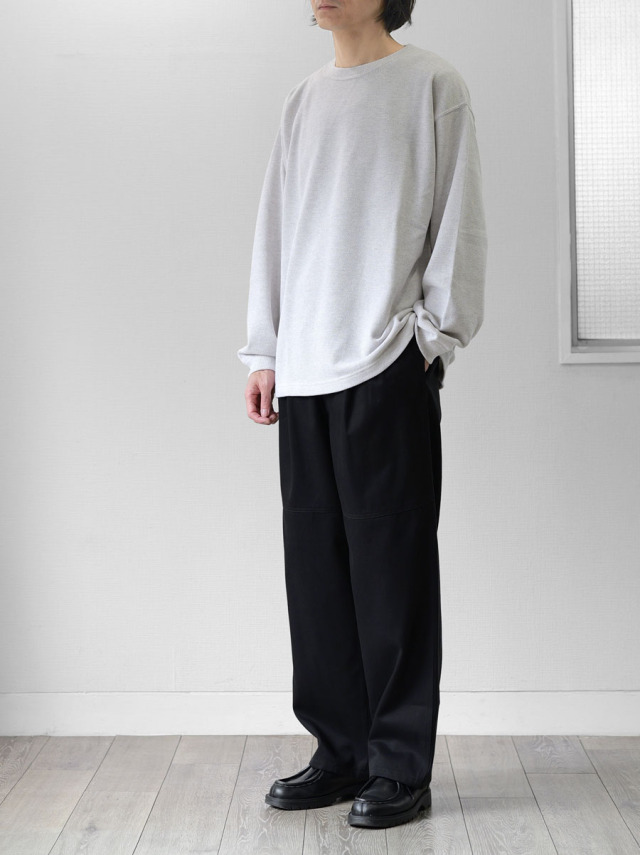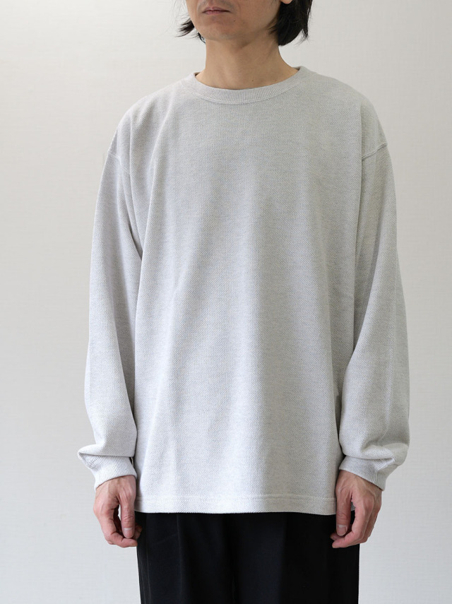 スウェットとロンTEEの中間くらいの生地厚でオールシーズン着用可。