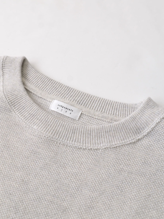 カノコ編みのクルーネックニット。