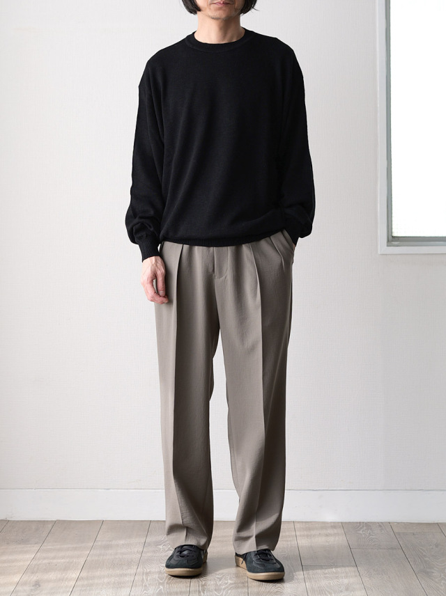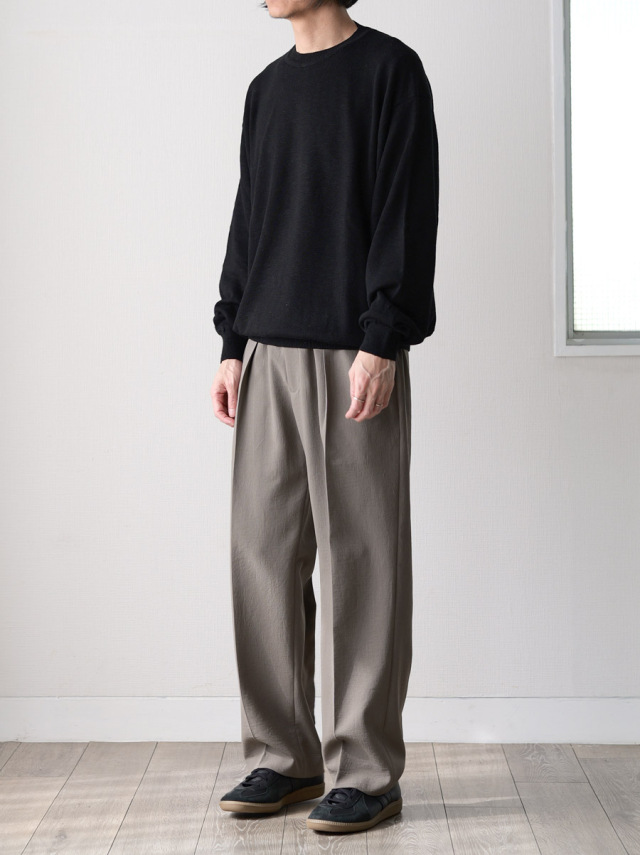 ネップ感と落ち感のあるレーヨン/リネンミドルゲージニット生地。
