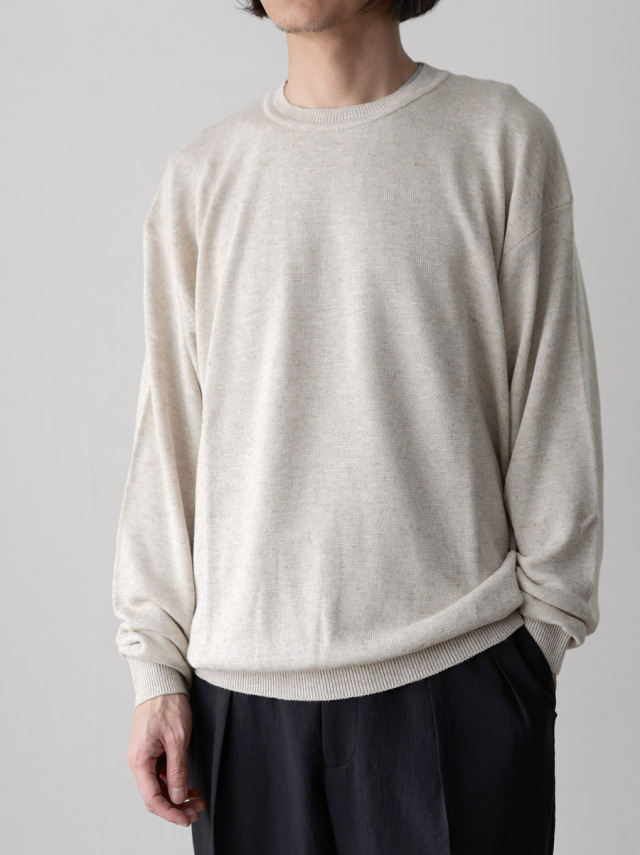 ネップ感と落ち感のあるレーヨン/リネンミドルゲージニット生地。