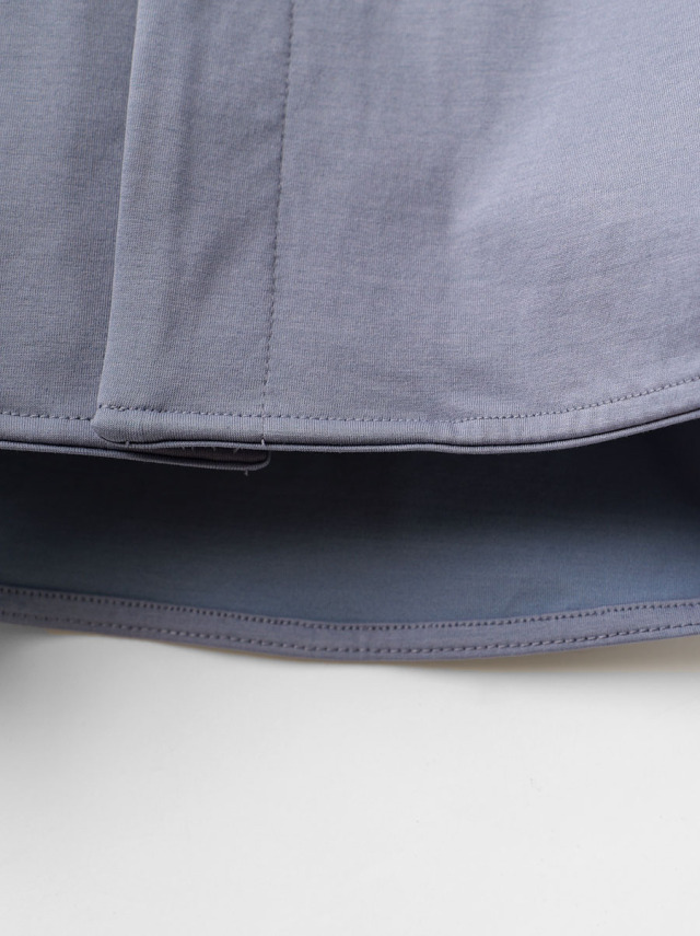 開きの無い独自の筒袖カフス仕様。裾は折り返しではなく裏バインダー仕様にする事で、