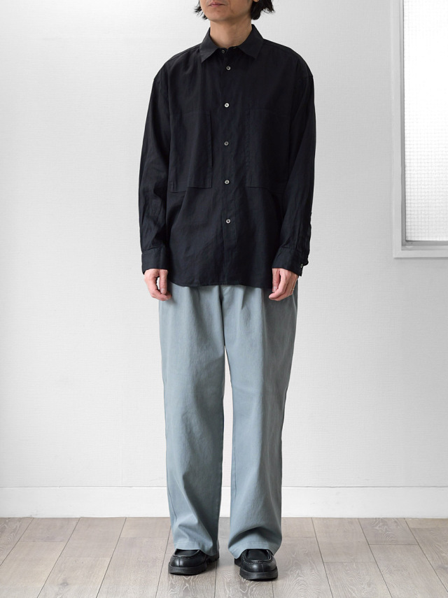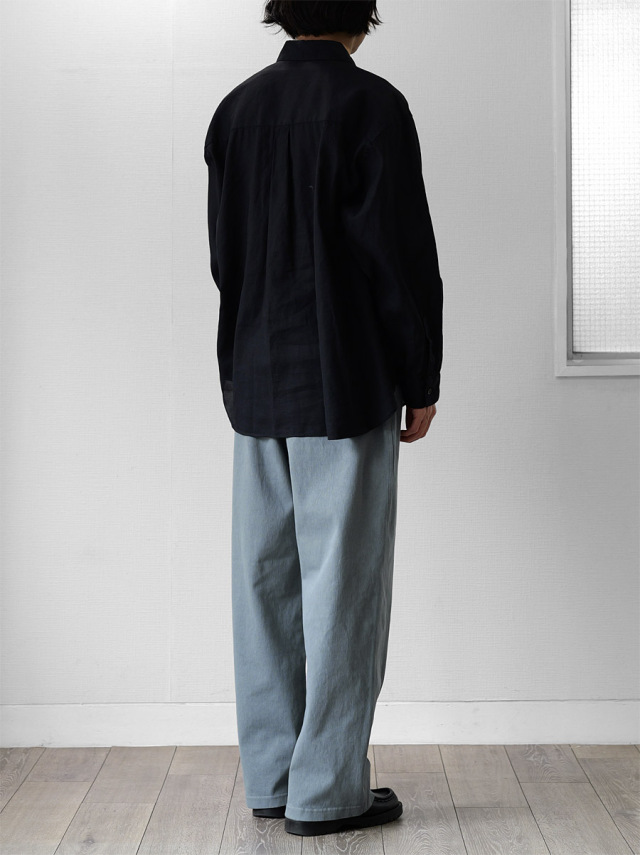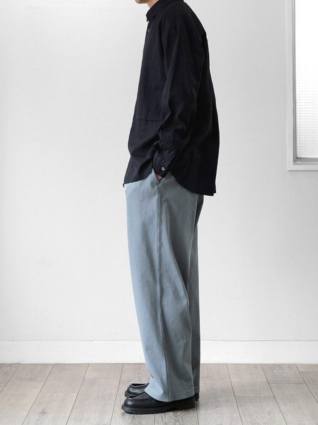 ゆとりを持たせたワイドスラックスシルエット。