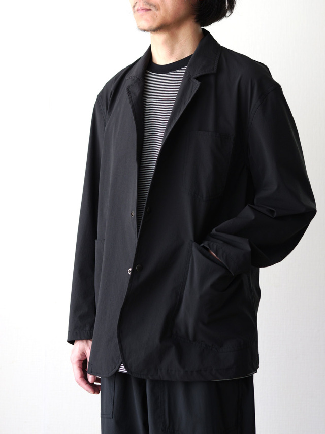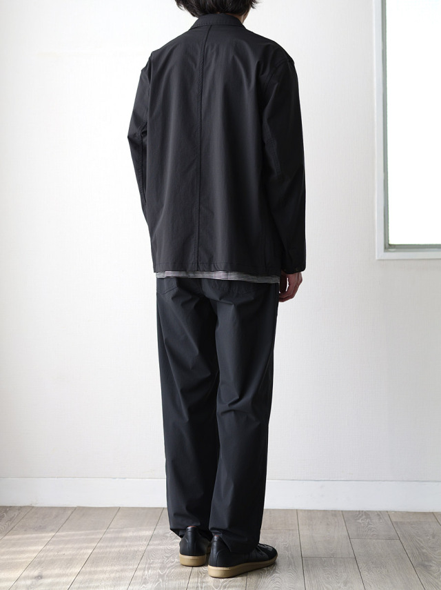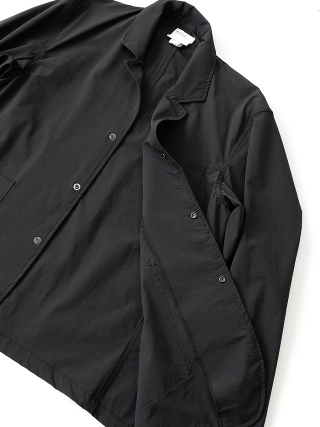 シャカっとした表面感、軽量で4WAYのストレッチ性に優れ、高い撥水性も備えています。