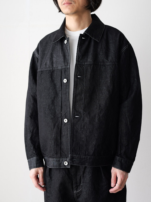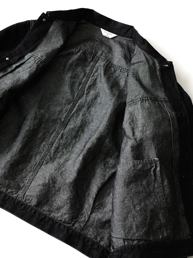 縦糸にコットン、横糸にヘンプを使用した薄手8.5ozのオリジナルデニム生地を使用。