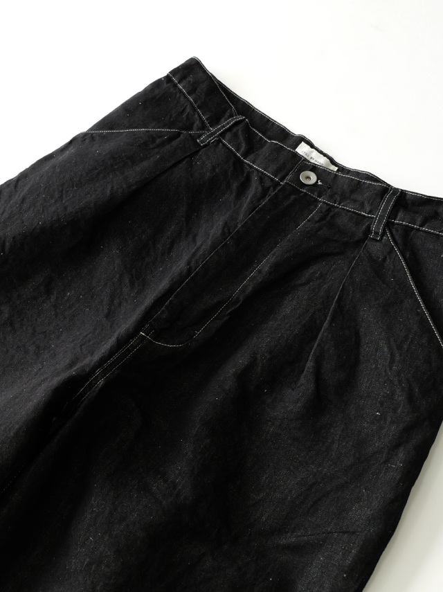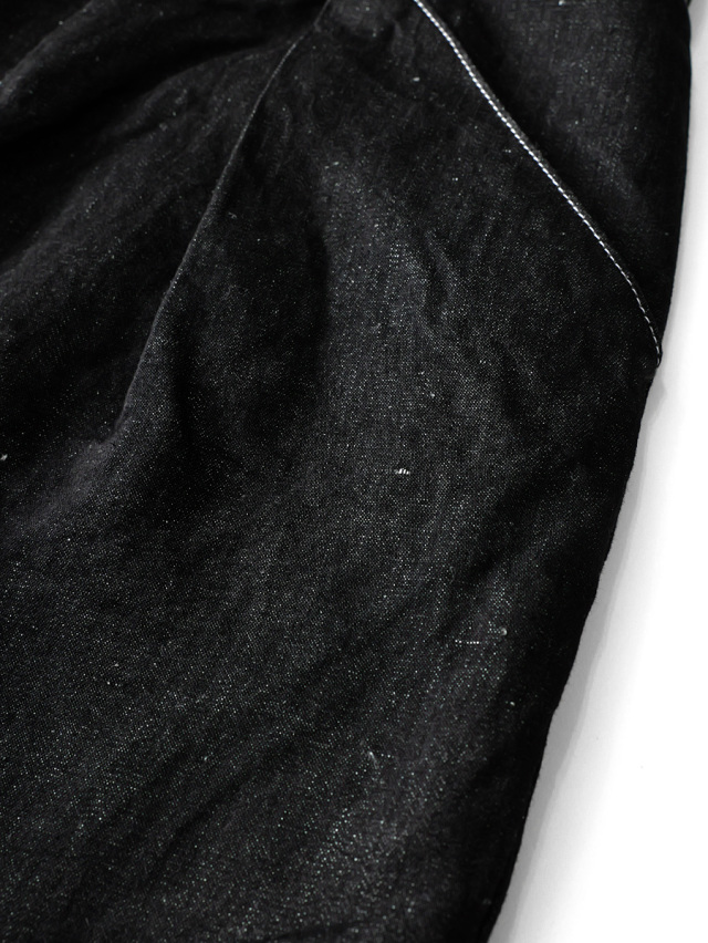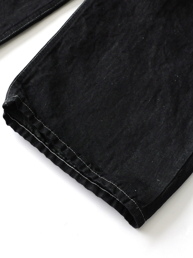 縦糸にコットン、横糸にヘンプを使用した薄手8.5ozのオリジナルデニム生地を使用。