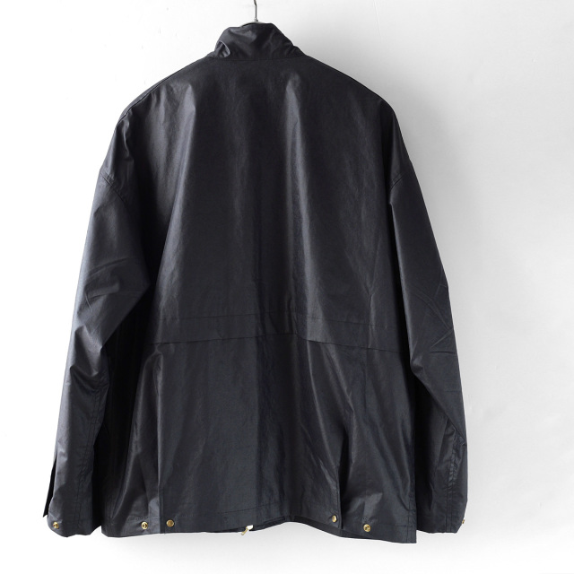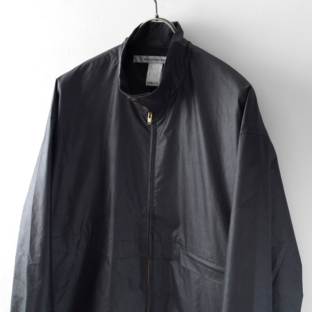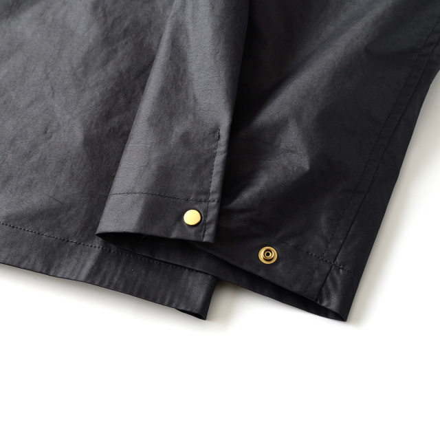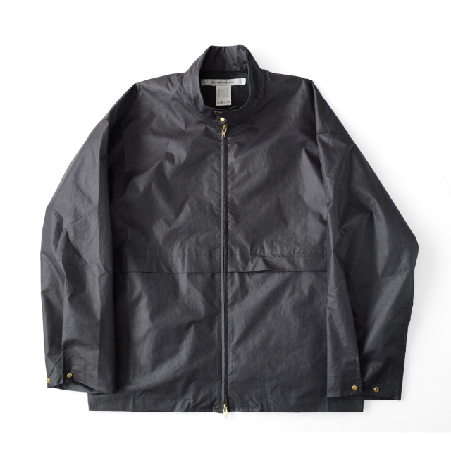 ダブルジップ仕様でスタンドネックの2つボタン留めデザイン。
