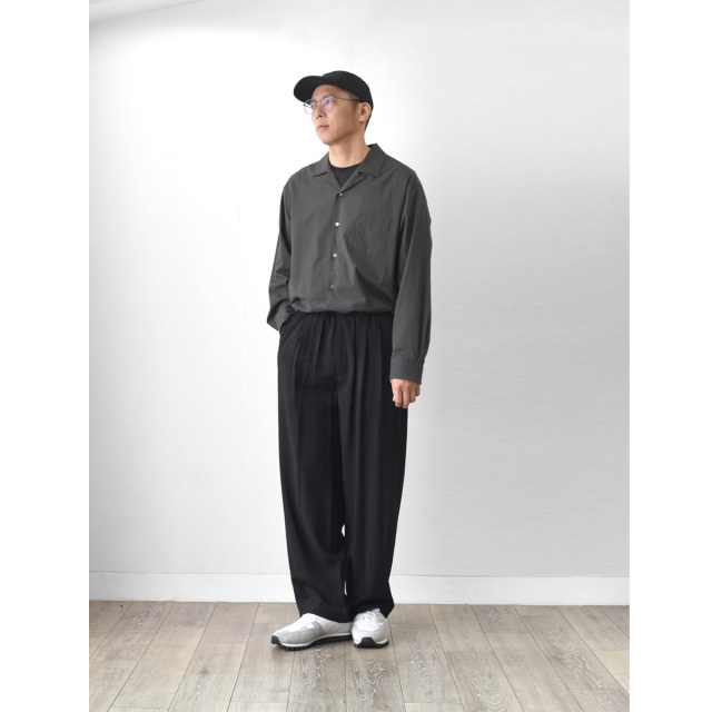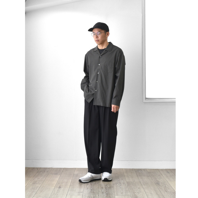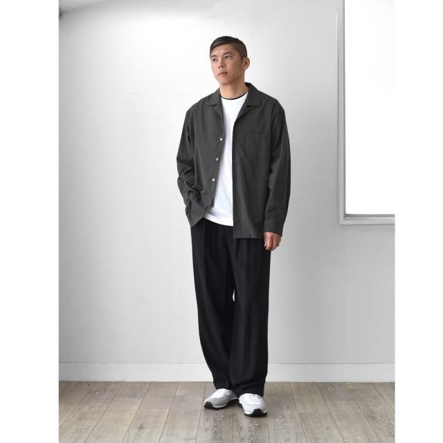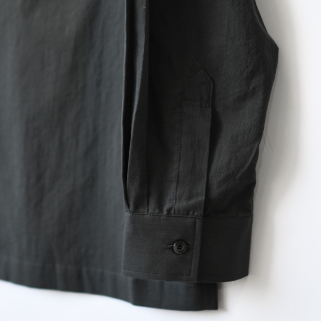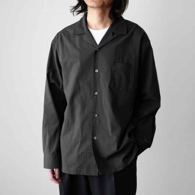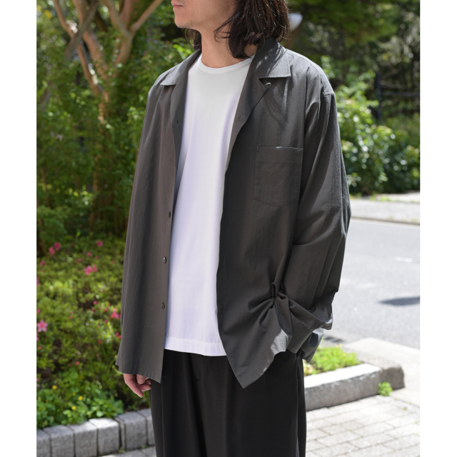 裾はフラットなシルエットで羽織としても使えるシャツです。