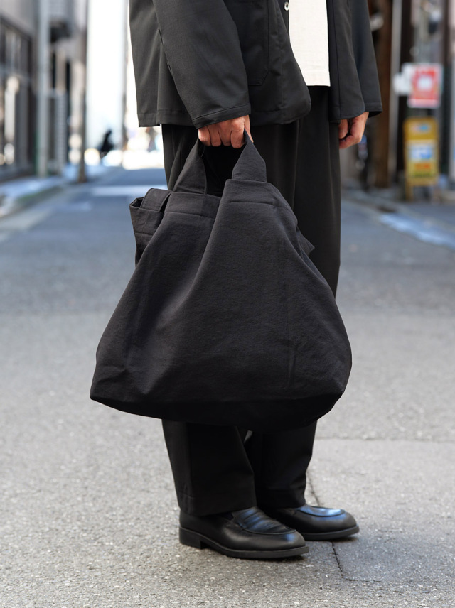 口部分についている巾着ディテールを絞るとフォルムをトライアングルに変化できます。