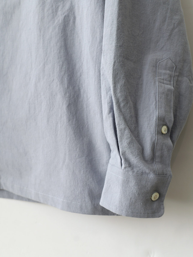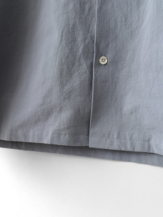 綿/麻生地に洗い加工を施し、程よい膨らみとペーパーライクなドライ感を両立させた生地。