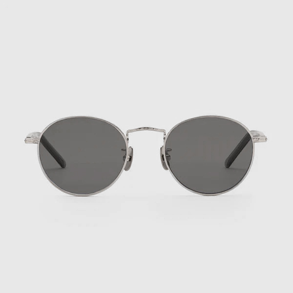 ブランドを象徴する2カーブレンズは、手削りガラスの名残を感じさせる曲面で、光を受けて高級感のある表情を演出。
