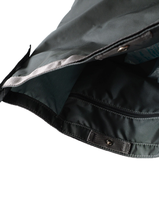 外側にファスナー付。開閉口はスナップボタン仕様。
