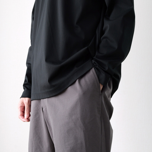 ストレッチ性が高い上に撥水性もあり。ハリのある素材ですが、着心地は優しく、