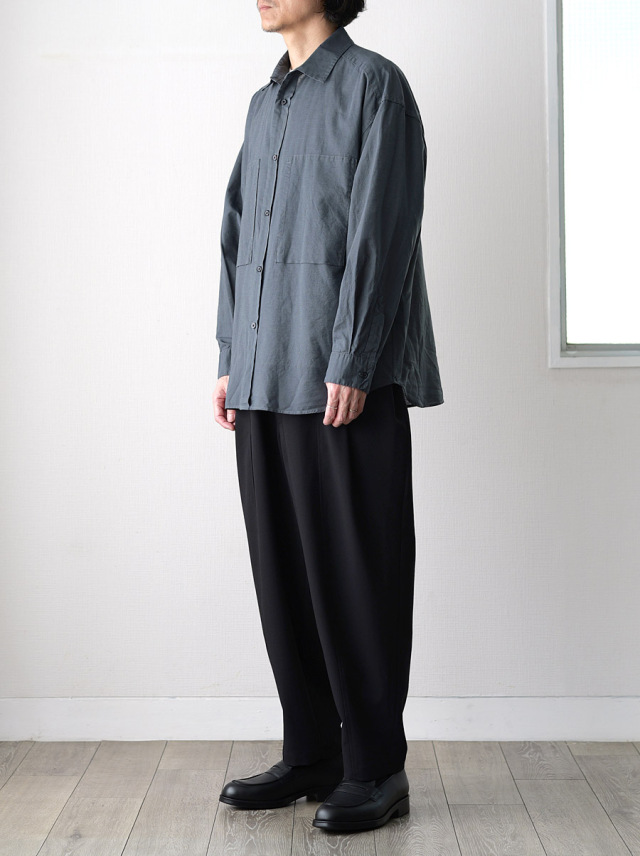 ワタリにゆとりを持たせた深め1タックの中太テーパードシルエット。