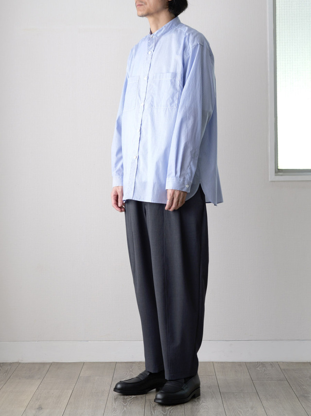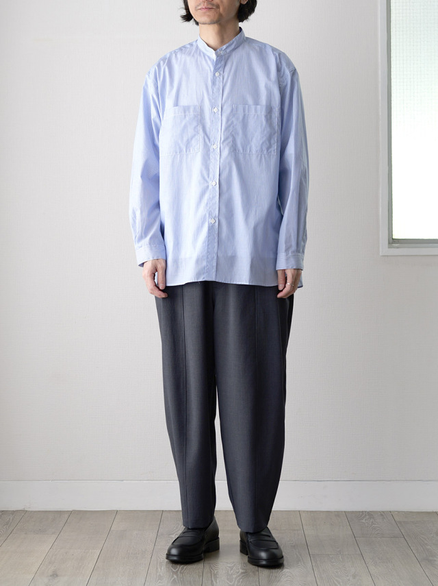 ワタリにゆとりを持たせた深め1タックの中太テーパードシルエット。