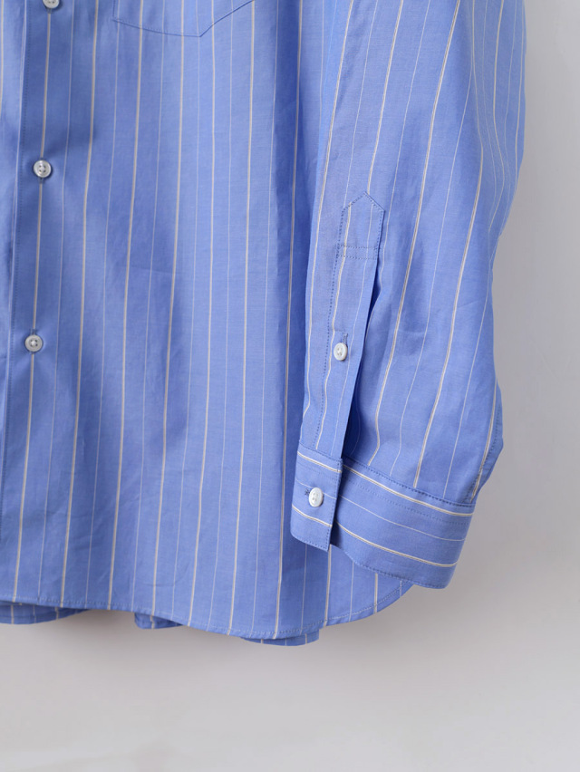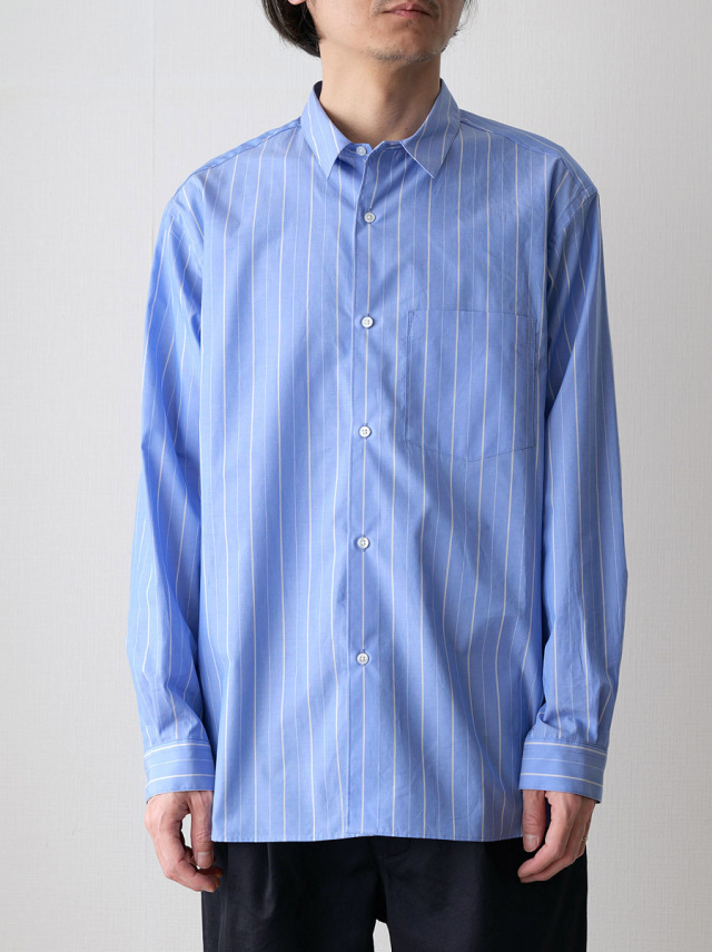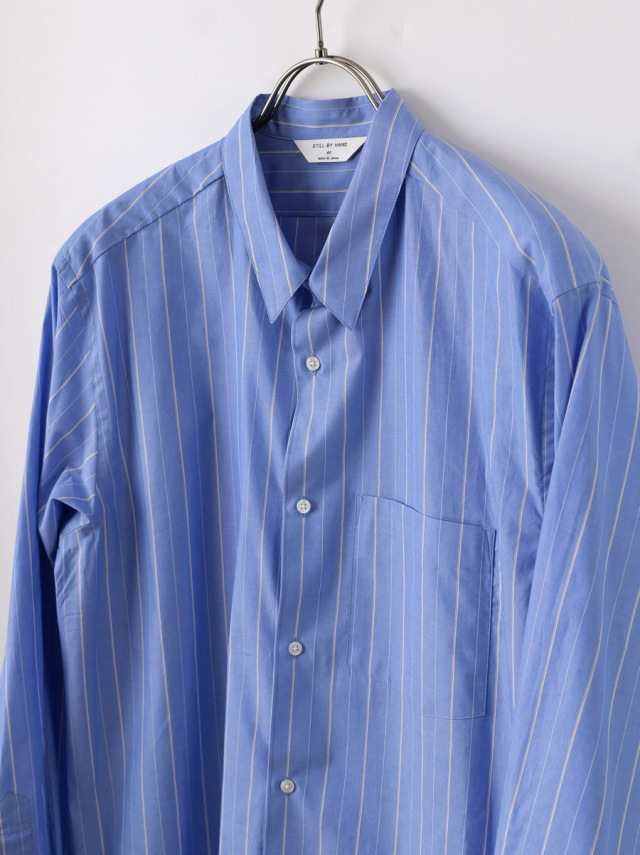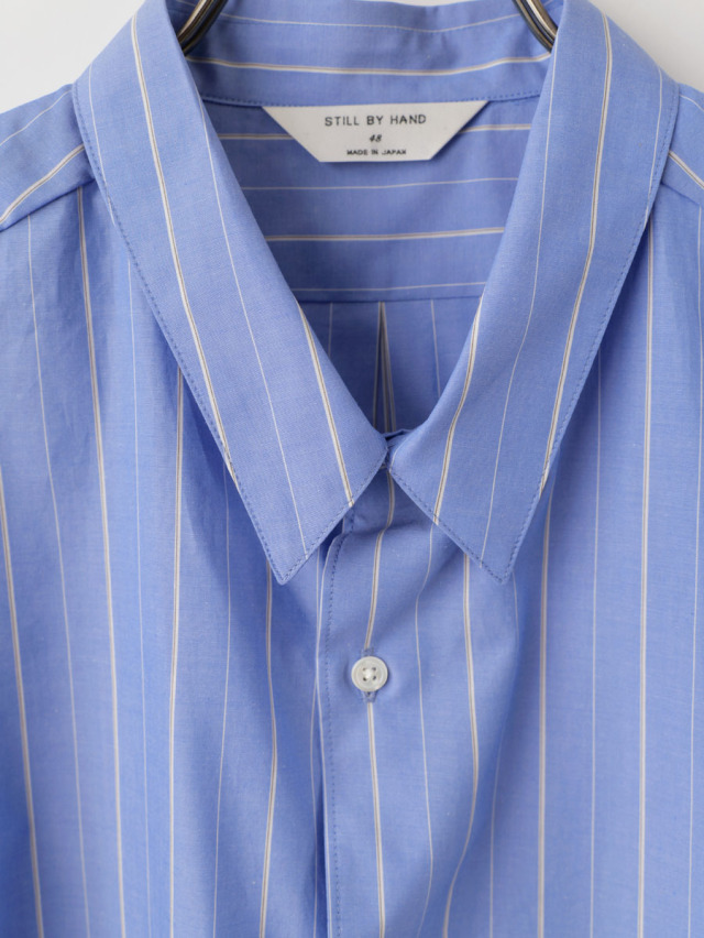 小襟でミニマルな印象、クリーンな雰囲気のシャツです。