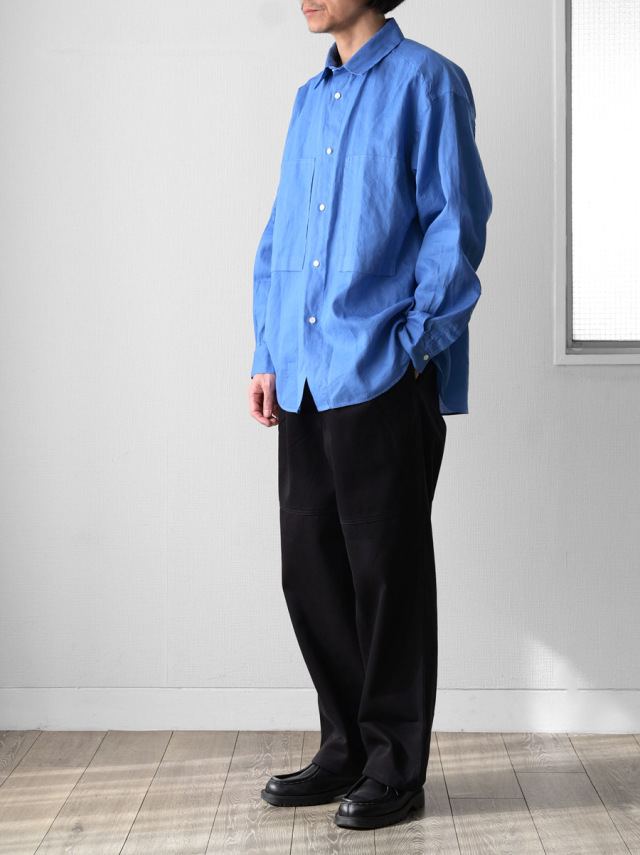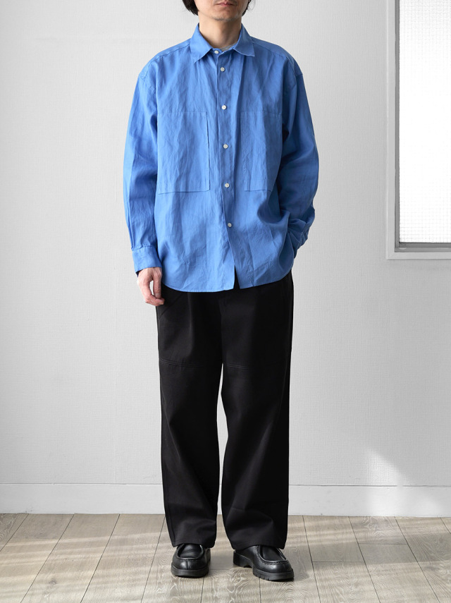 自然な風合いで、チノ・デニム・ツイルパンツなどによく似合うシャツです。