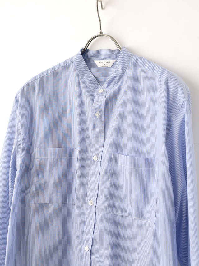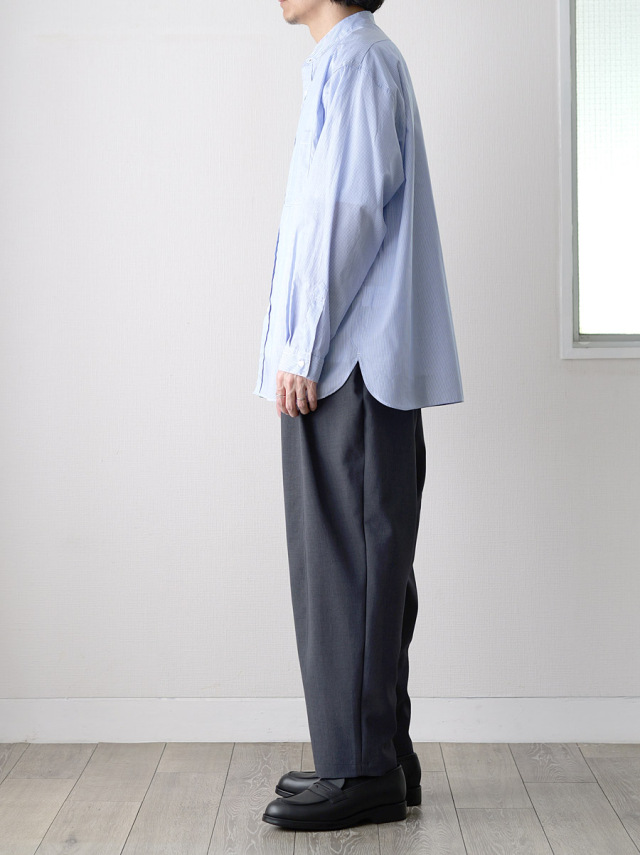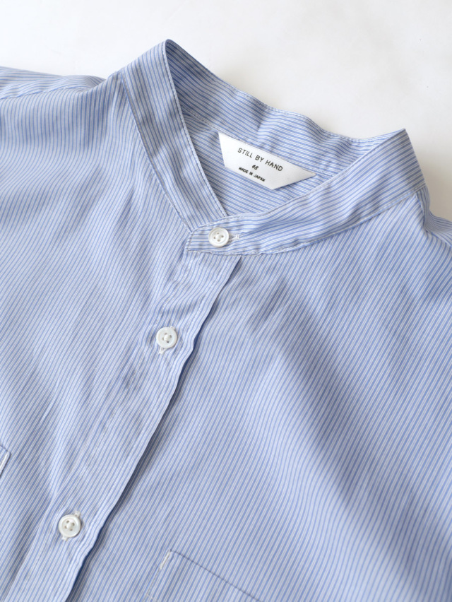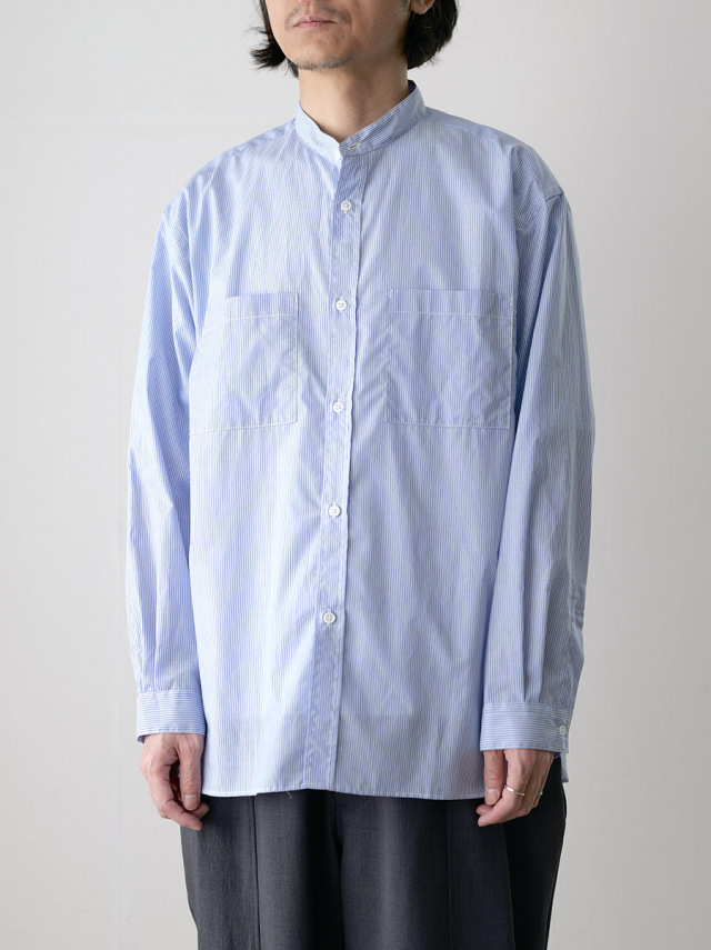 モデル : Striped Cotton Band Collar Shirts